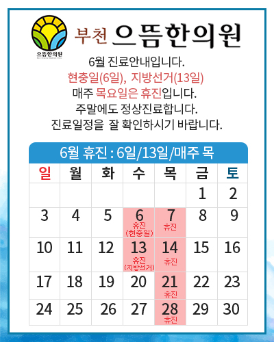 6월 공휴일 휴진안내.